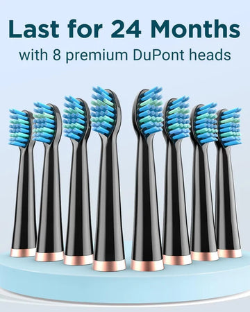 Electric toothbrush rechargeable comes with 8 premium Dupont replacement brush heads for electric toothbrush rechargeable, providing you with 2 years of usage and saving you money on buying new electric toothbrush for adults.