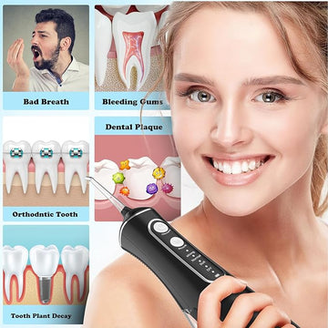 Dental water flosser provide 1600 - 1800 per minute pulse frequency and 20-140 PSI water pressure for teeth cleaning. Match with nozzles 360° rotatable design, our power dental flossers can precisely and effectively removes up to 99.99% of stains and food debris.